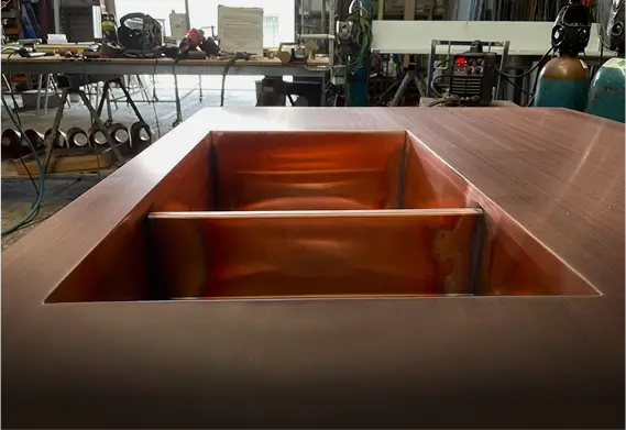 Custom fabrication backed by 120+ years of heritage and modern machinery (MIG, TIG, CNC). From architectural copper and brass features to stainless balustrades, toolboxes and industrial parts—plus CAD design and finishing options like polishing and coating.